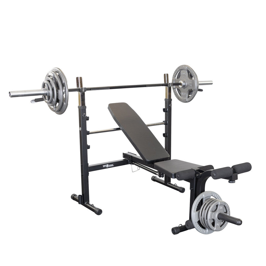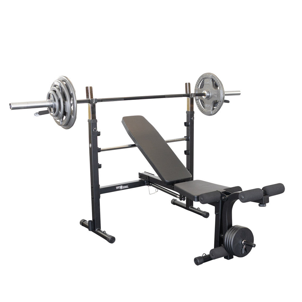 The Best Fitness Olympic Folding Bench is ideal for a variety of barbell and dumbbell exercises. The quick-change safety pull pin allows multiple back pad adjustments, allowing you to move smoothly and safely through your routines. It accommodates users of any size with varying height adjustments and is designed to fit both 6-foot and 7-foot bars and also comes with leg curl/leg developer extension. Best of all, when you're done for the day, the Best Fitness Olympic Folding Bench collapses to a manageable, storable size.