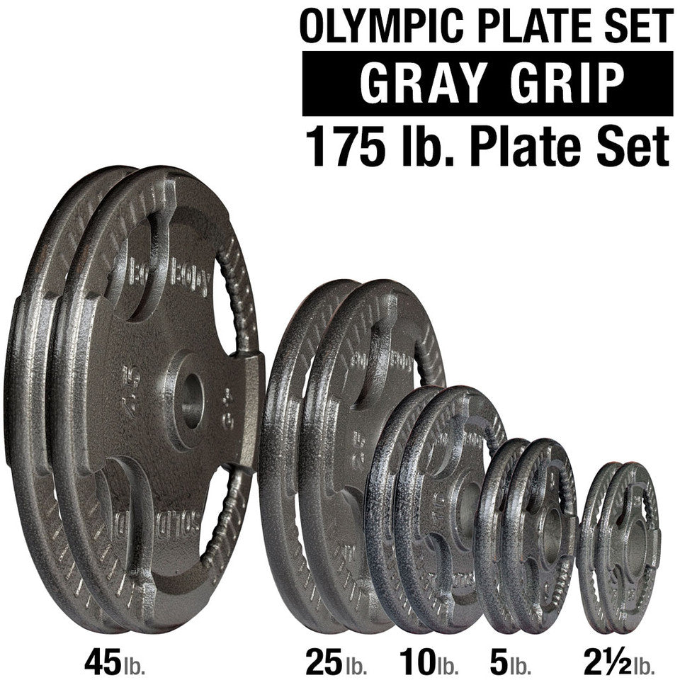 Fully-integrated, Quad-grip design guarantees safer and easier performance than any other plate on the market. Body-Solid Steel Grip Olympic plates are cast from the highest quality gray iron, creating an exceptionally strong and durable product. Feature baked on hammertone gray finish that is durable, chip and rust resistant. Heavy lifting has never been easier or safer.
